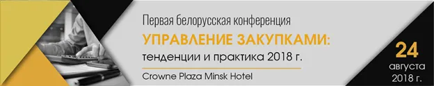 24 августа в Минске пройдет Первая белорусская конференция «Управление закупками: тенденции и практика 2018 года», которая станет площадкой для обсуждения проблемных вопросов и практики в сфере закупок.