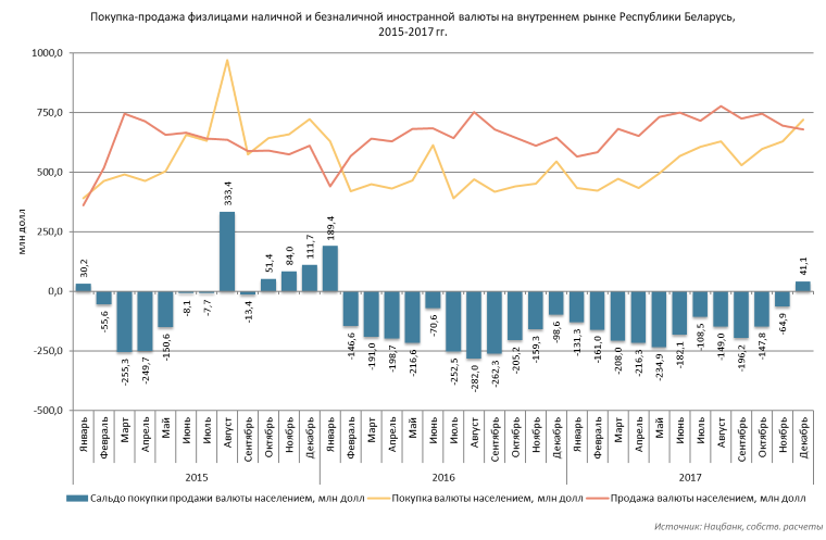 В целом за 2017 г сумма чистой продажи валюты населением составила 1,759 млрд долл против 1,894 млрд долл за 2016 г.